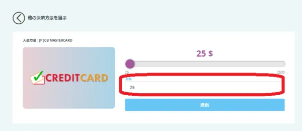 クレジットカード入金の手順