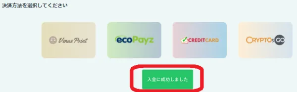 「入金に成功しました」と表示されれば入金完了です。即座にアカウント残高に反映されます。