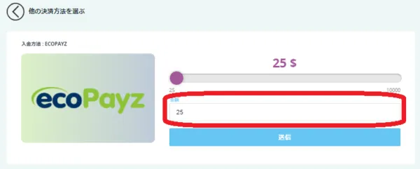 入金する金額をドルで入力して「送信」を押します。
