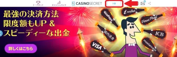 カジノシークレットの入金方法一覧