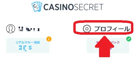 カジノシークレットにログインし、画面右上のアカウントメニューを開きます。